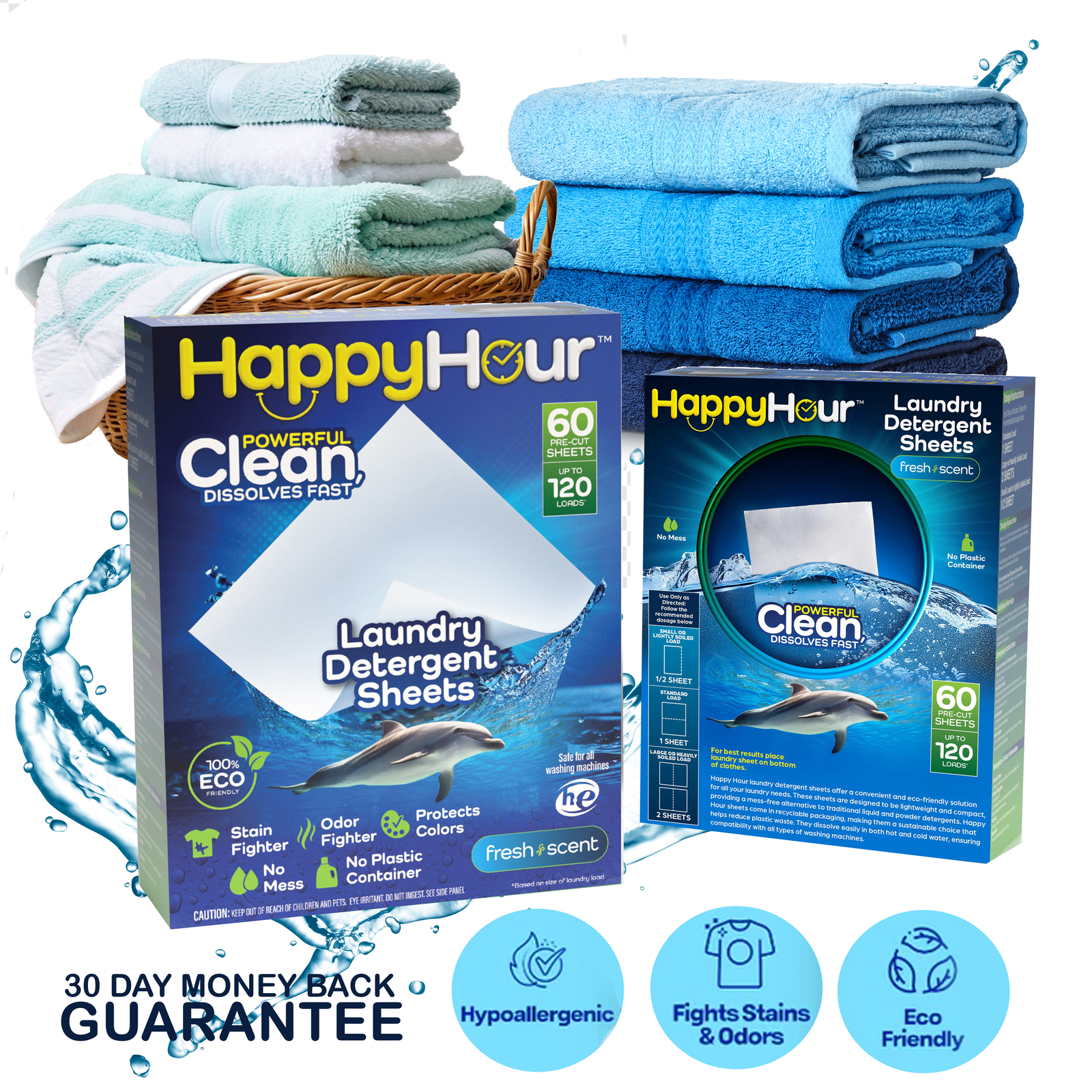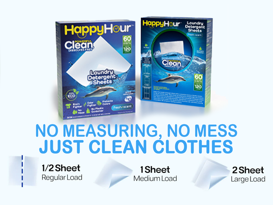 We're so confident Happy Hour will become your favorite laundry cleaning solution, you can try it for 30 DAYS! If you don't LOVE our detergent sheets, simply send them back to us — No questions asked!